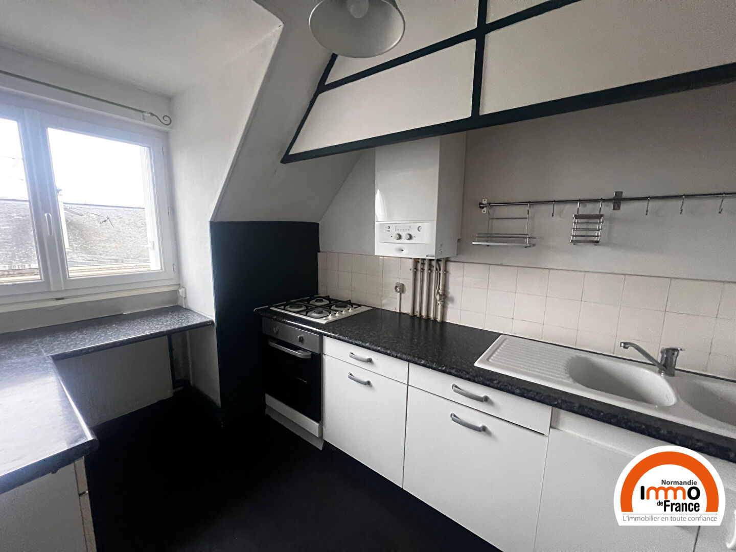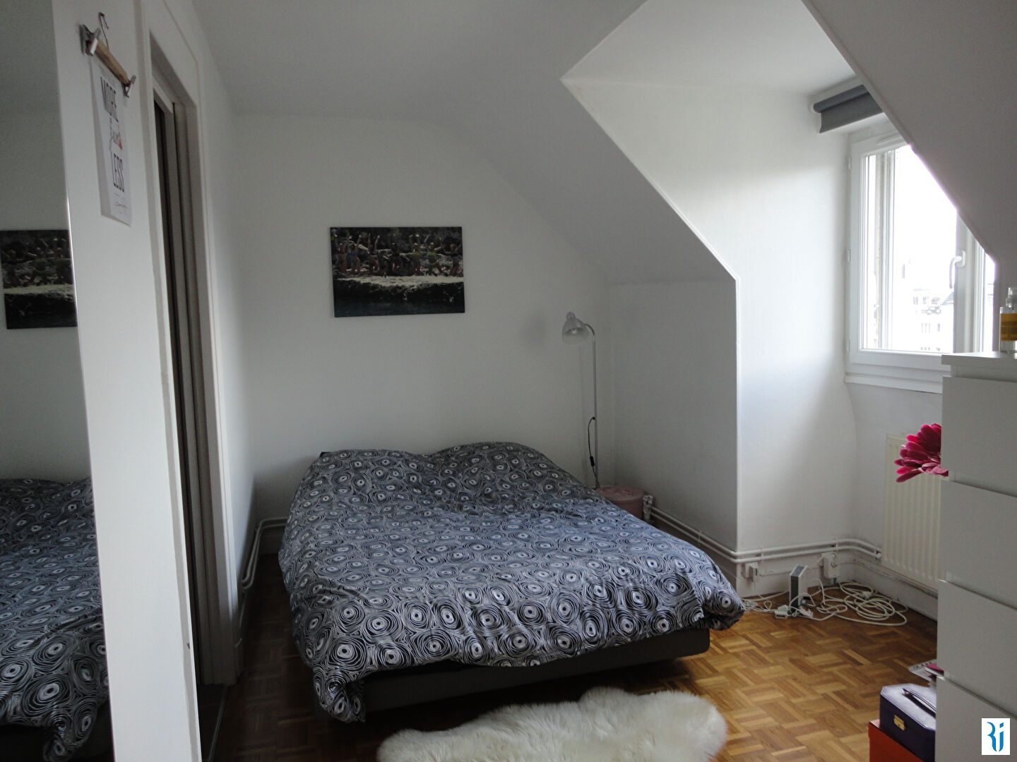 Au coeur de Rouen et à côté de la Cathédrale F2 de 48 m² au dernier étage : entrée, séjour avec grand placard et cheminée décorative, cuisine aménagée et équipée, 1 chambre, SDD.Chauffage individuel gaz.Nombre de lots dans l'immeuble : 18.