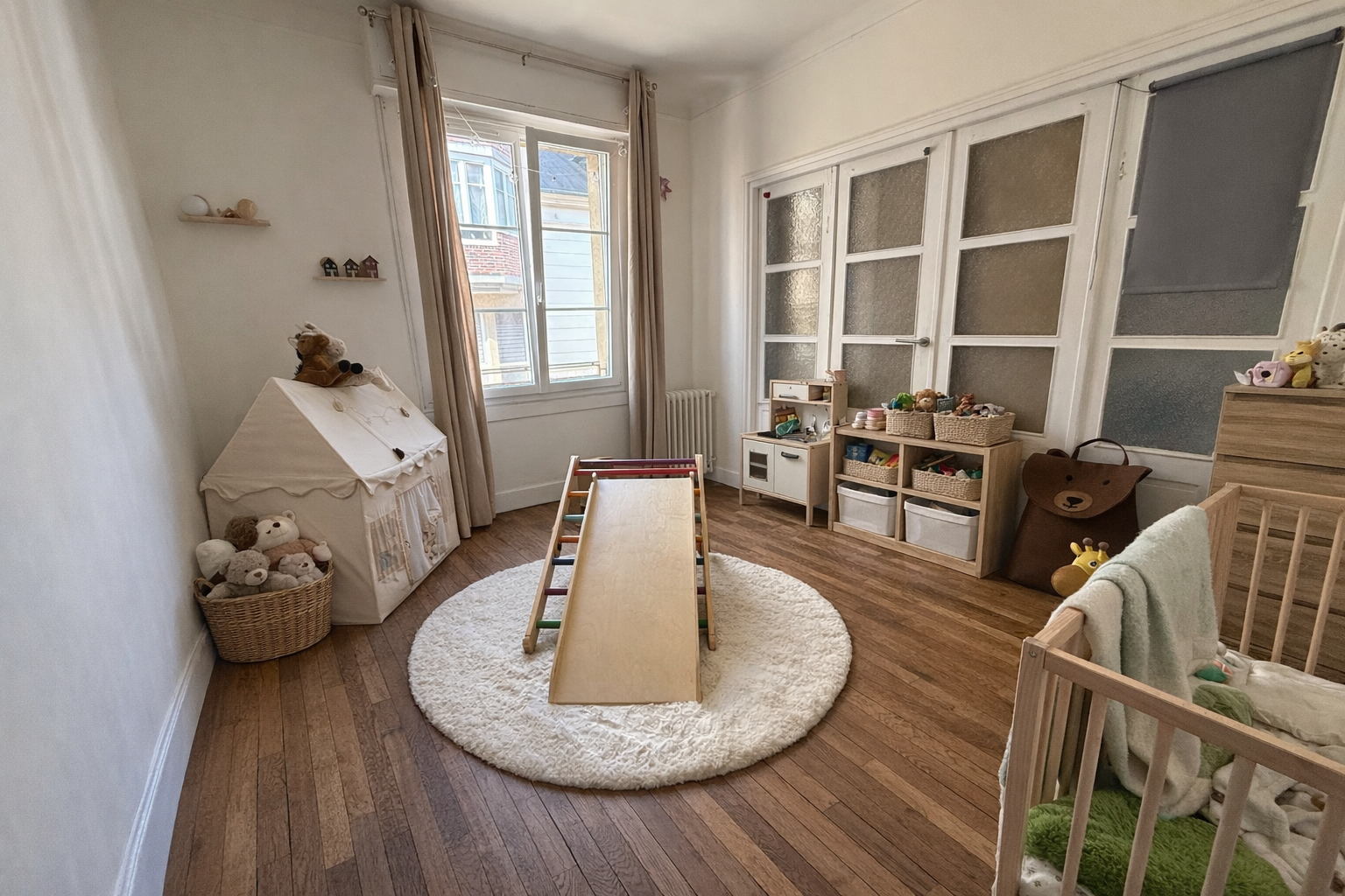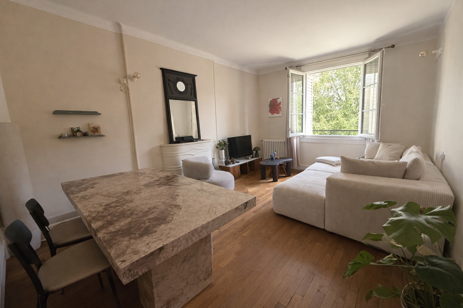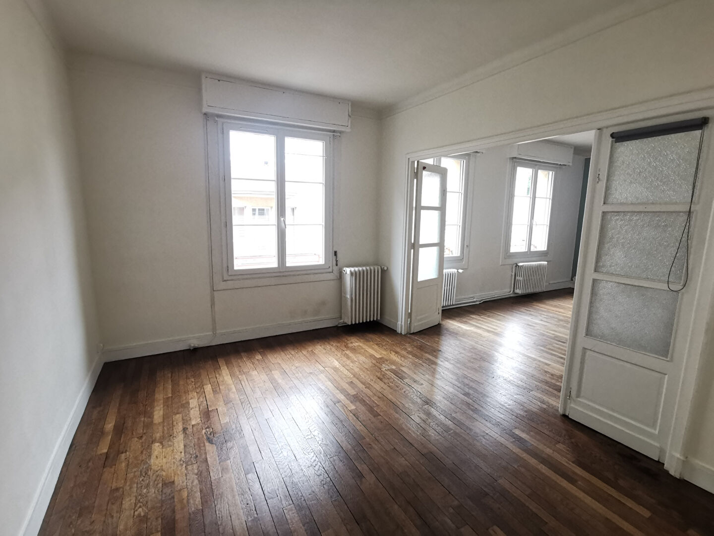 Appartement plein de charme avec parquet avec 2 chambres , un séjour, une salle de douches et un WC indépendant Cave et garage Charges : entretien des parties communes, chauffage au gaz, provisions sur eau froide Disponible 30/10