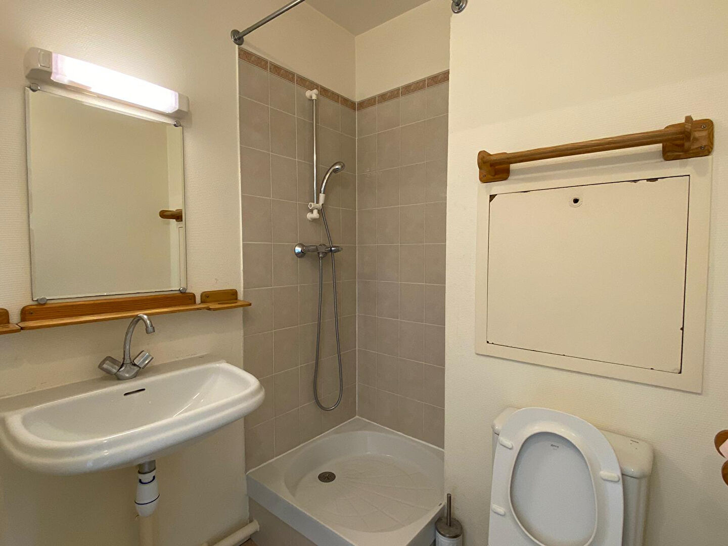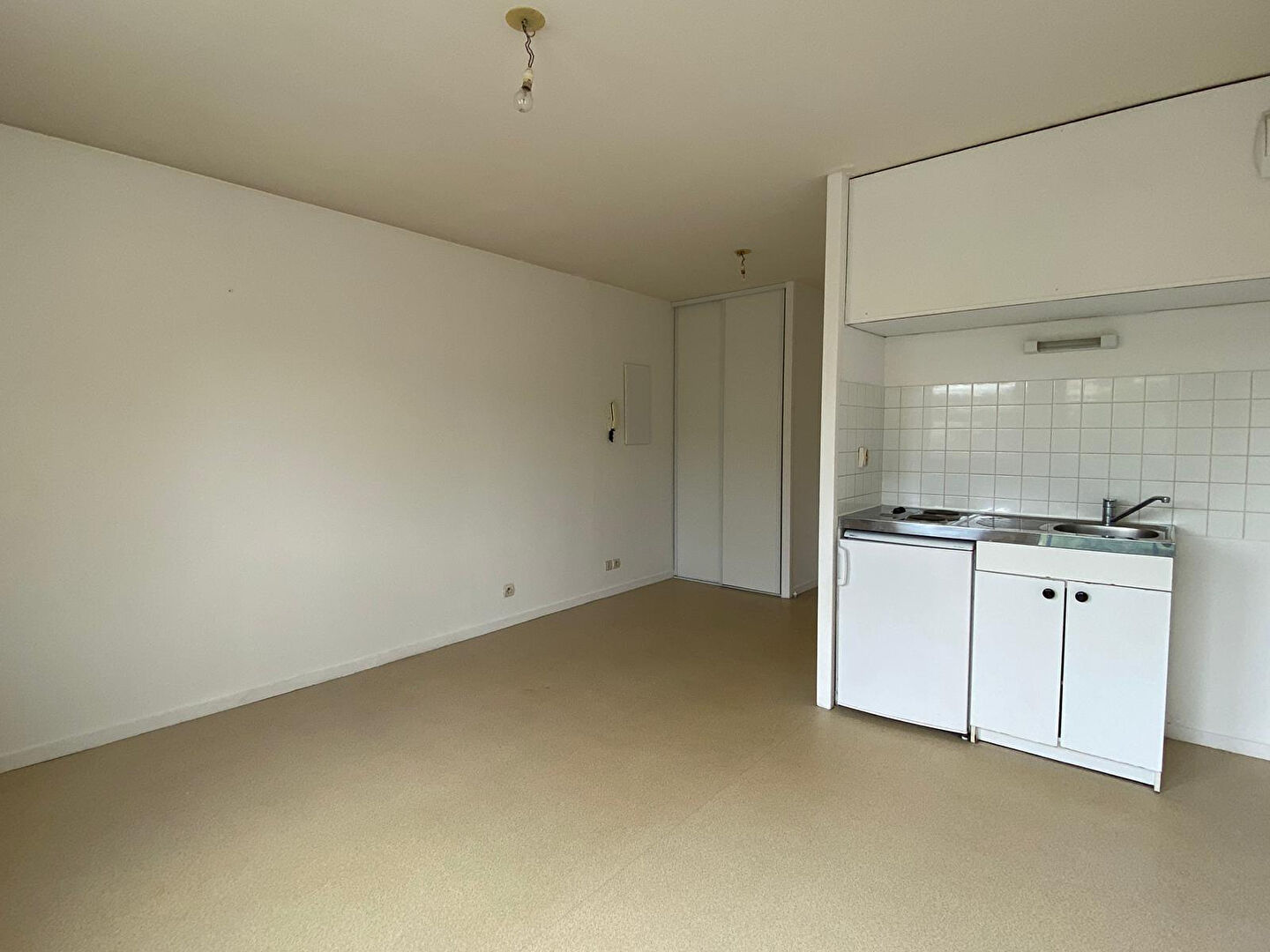Studio comprenant : une entrée, une pièce principale avec coin cuisine et placard, une salle d'eau avec WC Inclus dans les charges : entretien des parties communes et provision sur eau froide Disponible le 29/01