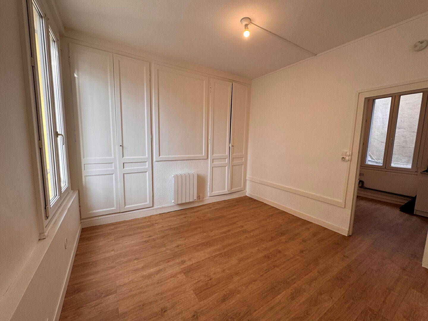 F1 bis de 32,62m2 situé au rez-de-chaussée dans une IMPASSE de la place Saint Vincent comprenant : une pièce de vie avec PLACARD, une cuisine séparée, un bureau de 8m2 pouvant servir de coin nuit et une salle de douche avec WC.