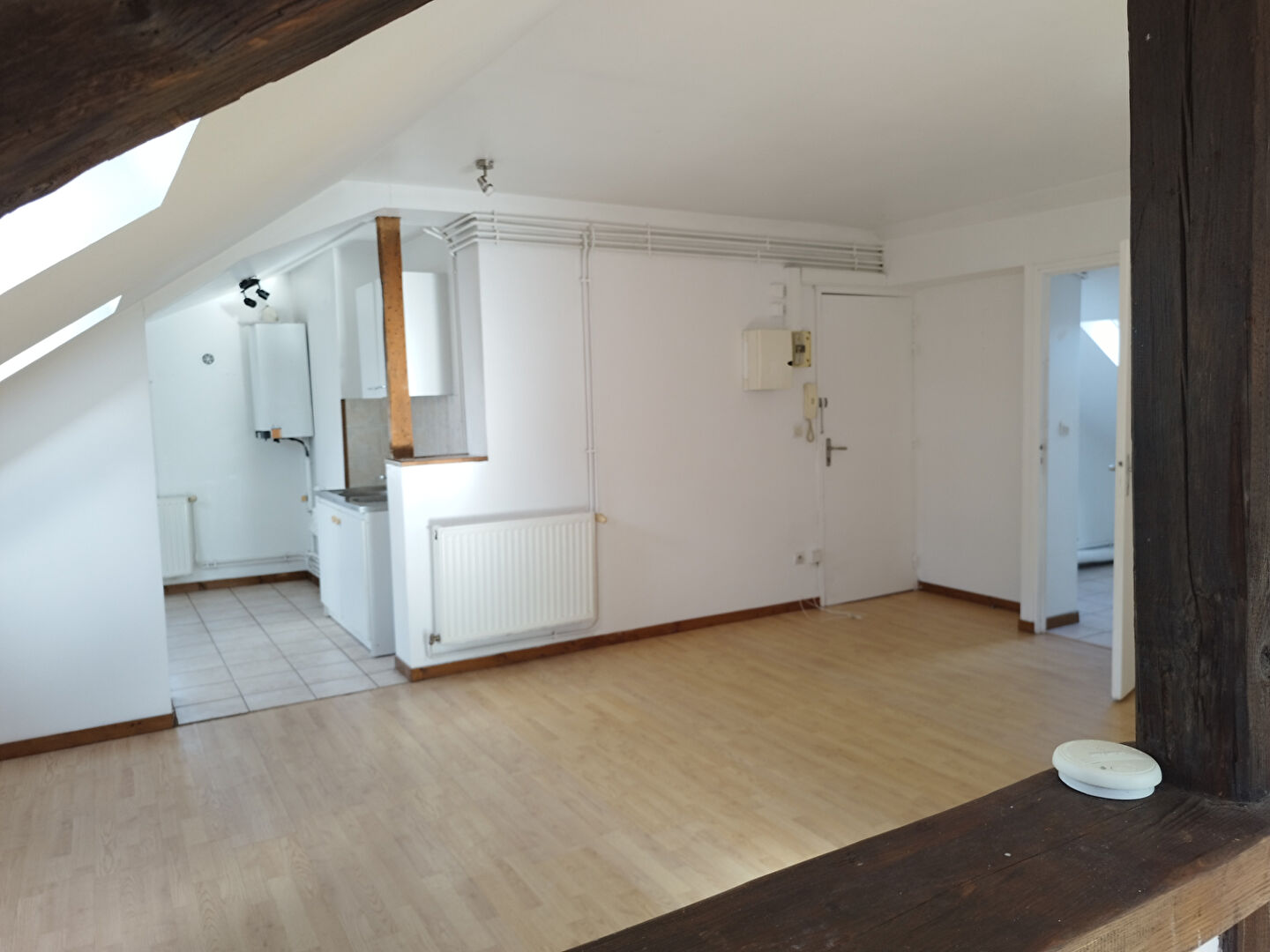 EXCLUSIVITÉ IMMO DE FRANCE CARPENTIER IMMOBILIER - Appartement coup de coeur, mansardé d'une surface réelle de 65m2 surface selon loi Carrez 44m2, au 3eme et dernier étage d'un petit immeuble à ELBEUF , à deux pas du centre ville et à à 300 m de la mairie et 100 m d'une épicerie. Comprenant : Grand séjour très lumineux desservant un espace bureau pouvant se transformer en chambre et une cuisine équipée. Le séjour et bureau sont revêtus d'un parquet. Une chambre de 16 m2 équipée d'un parquet. Une salle de bain/WC très lumineuse. Chauffage gaz de ville. EAU FROIDE comprise dans les charges.