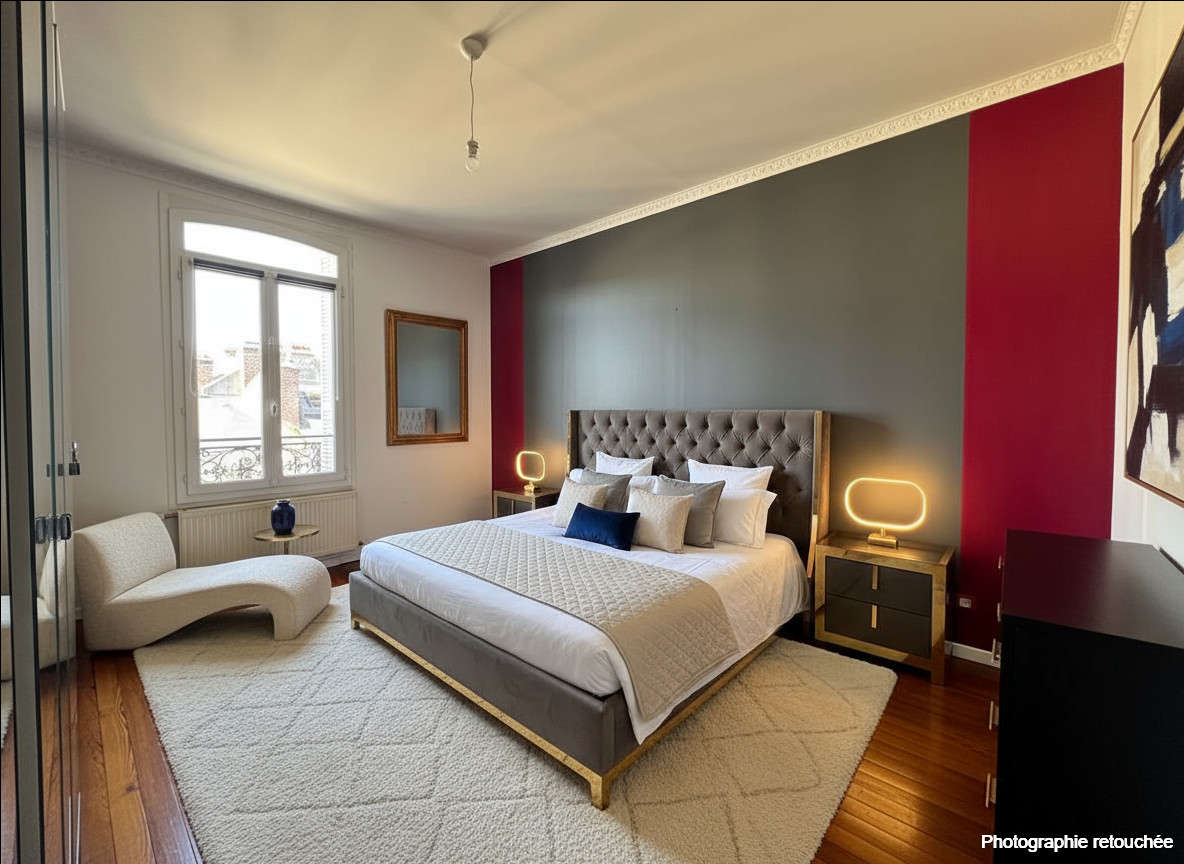 Bel appartement avec grande pièce à vivre lumineuse avec balcon, deux chambres spacieuses, grande cuisine aménagée et équipée, salle de bains mixte, water-closet séparés, buanderie