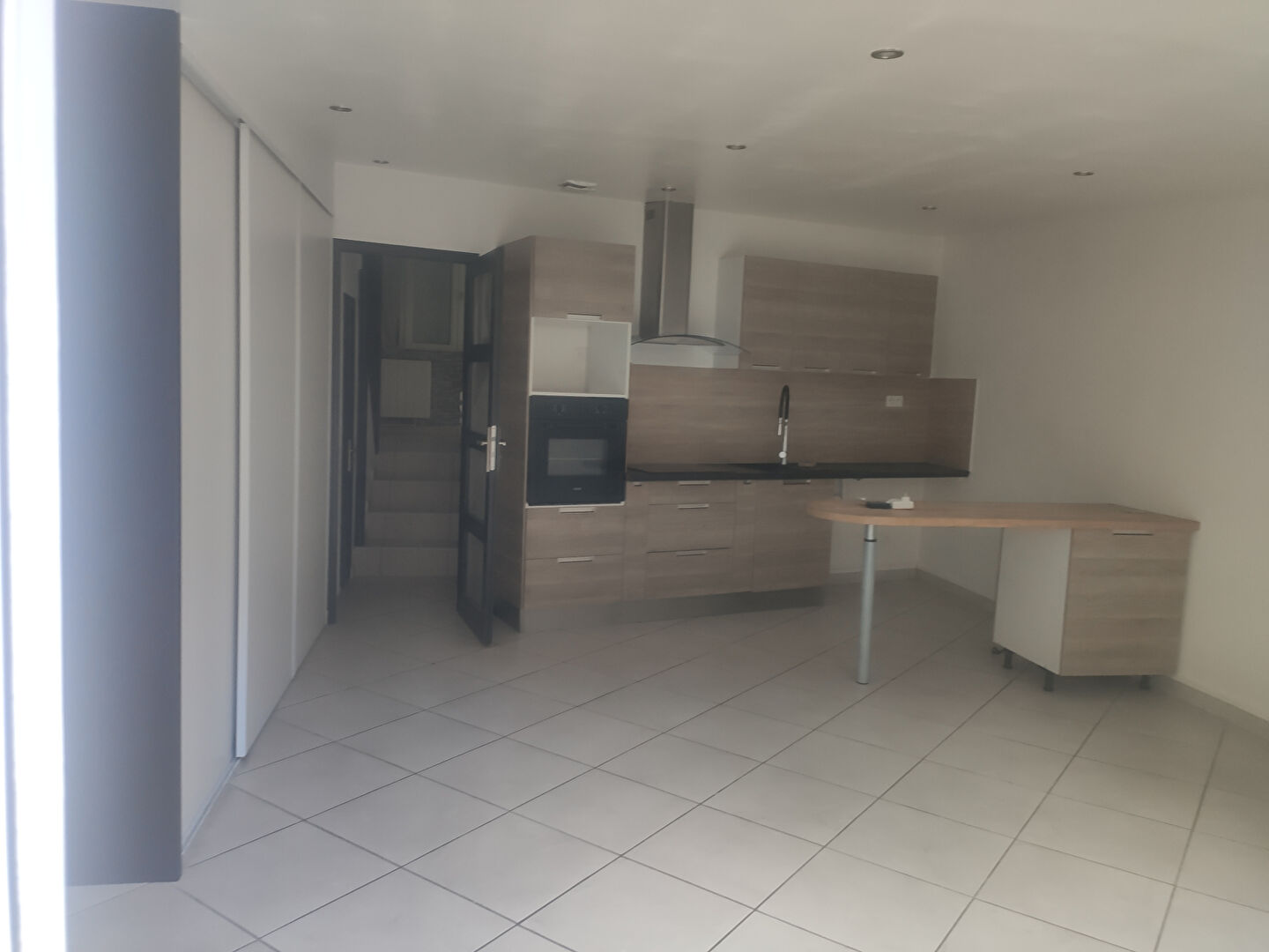 Au rez-de-chaussée : belle entrée, WC, salle de bains avec baignoire, séjour ouvert sur cuisine aménagée et équipée de plaques vitrocéramique, hotte, four électrique, éléments de rangement hauts et bas accès cour intérieure.