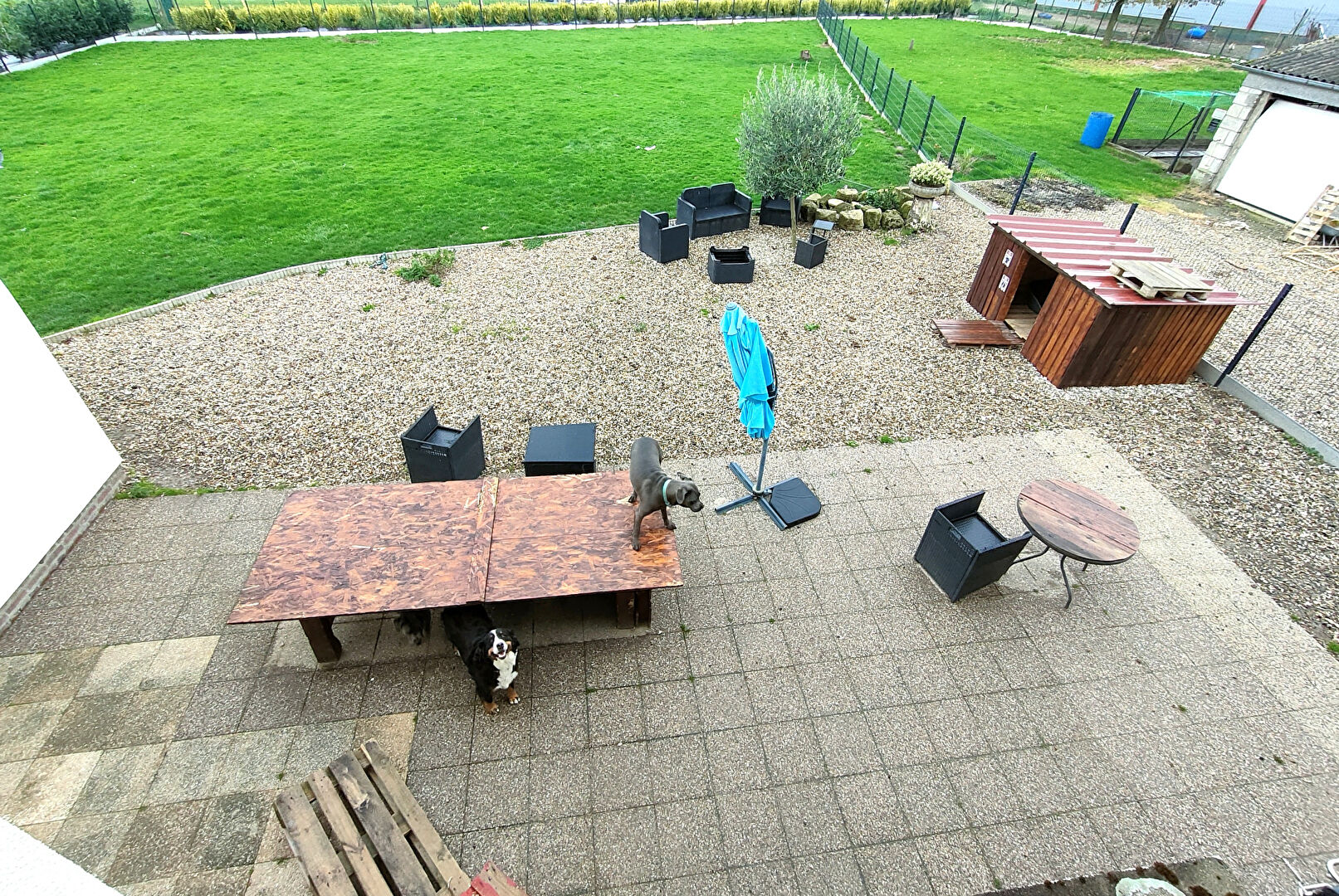 4 garages, vaste cave de 80 m2 ,terrain plat et clos d'environ 3000 m2.