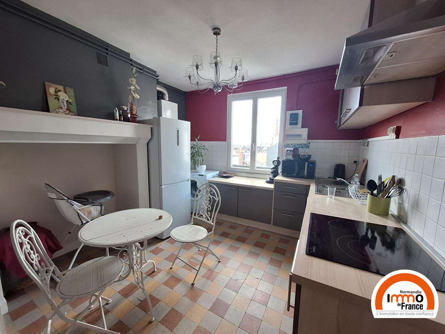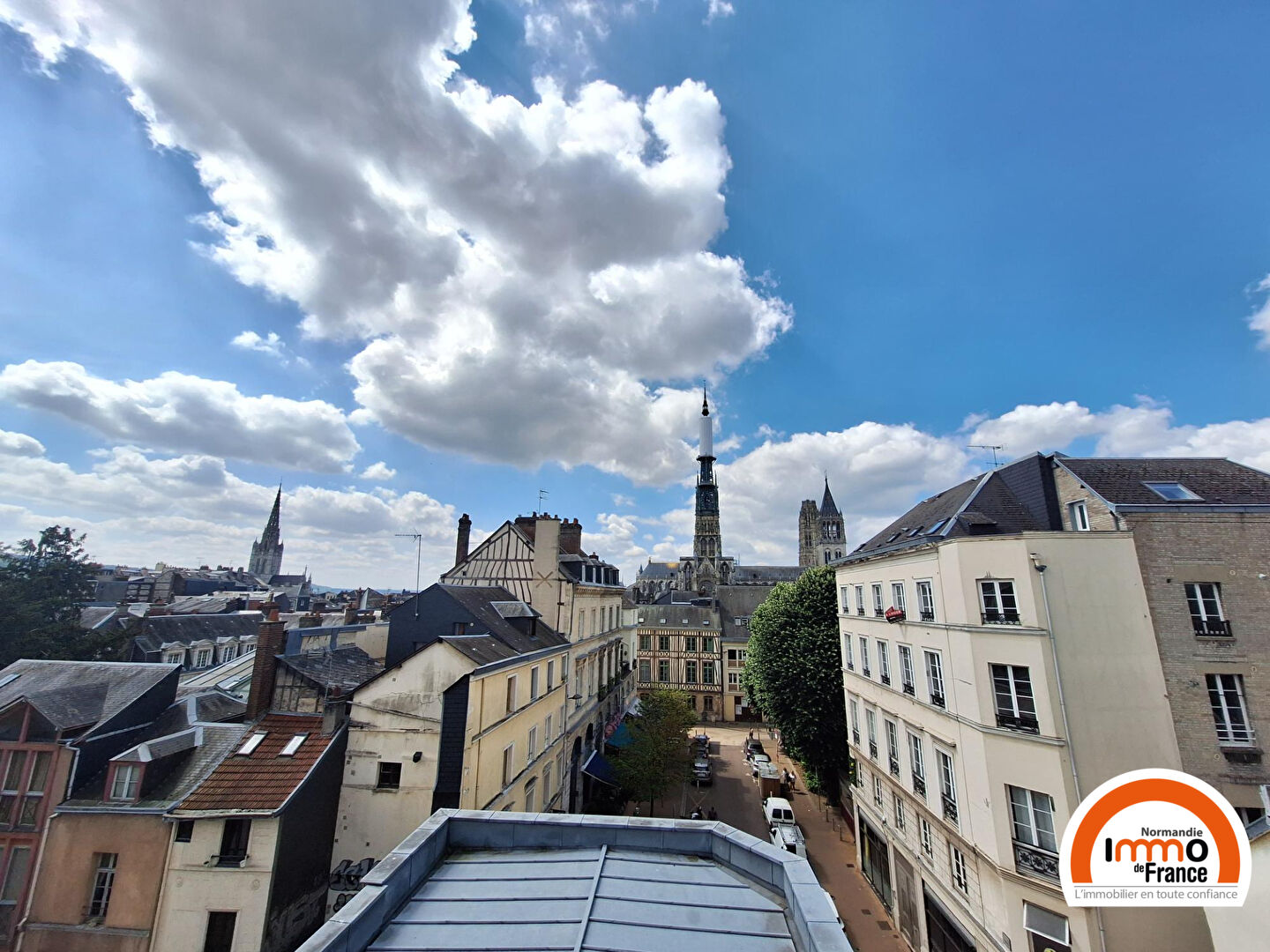 Très joli F3 entièrement MEUBLE de 80,34 m², au 4ème et dernier étage avec une vue imprenable sur la Cathédrale, comprenant : entrée, séjour avec cheminée décorative avec vue exceptionnelle face à la Cathédrale, cuisine aménagée et équipée (plaques de cuisson, four, hotte, réfrigérateur), 2 chambres, bureau avec rangements, salle de bains.