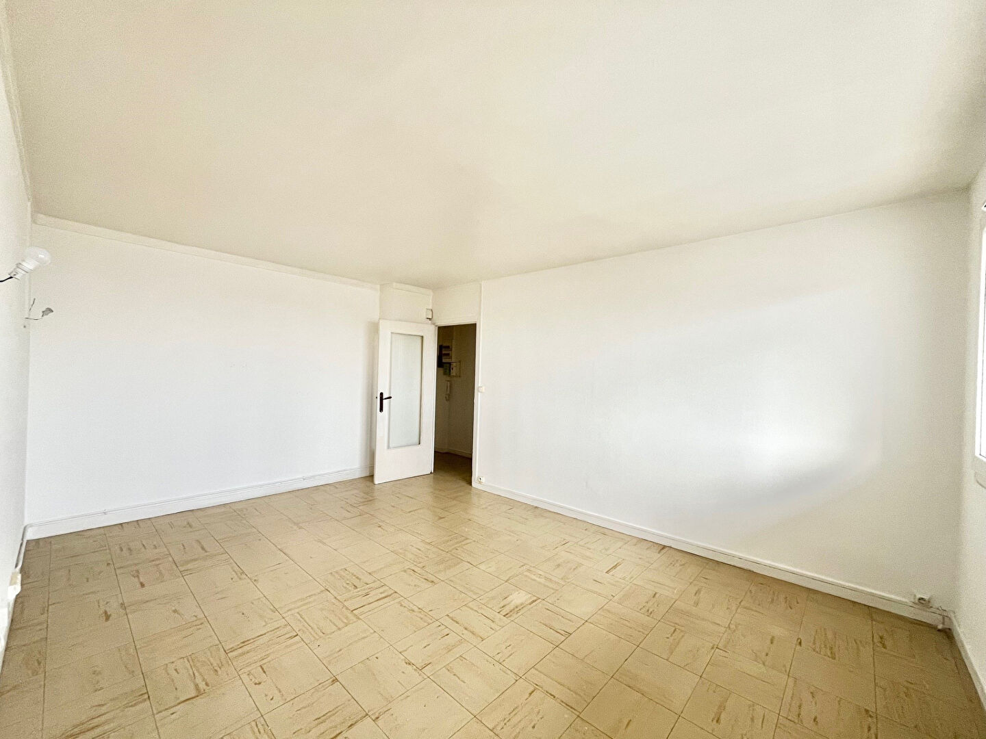 Salon-séjour de 18 m² donnant sur un grand balcon