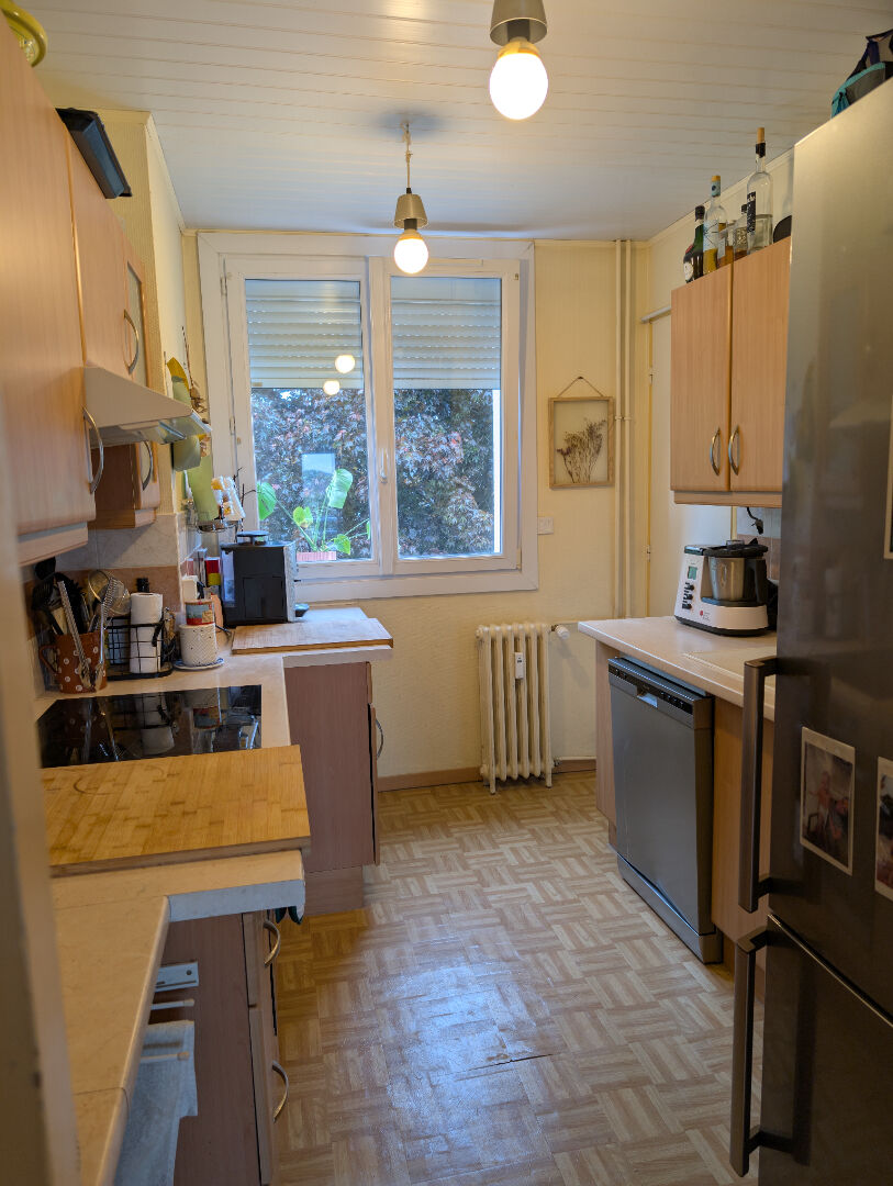 Celui ci se compose d'un grand séjour avec balcon, d'une cuisine aménagée et équipée four, plaques, hotte) , de 2 chambres, d'une salle d'eau et un WC séparé. Un garage fermé et une cave sont rattachés à ce bien.