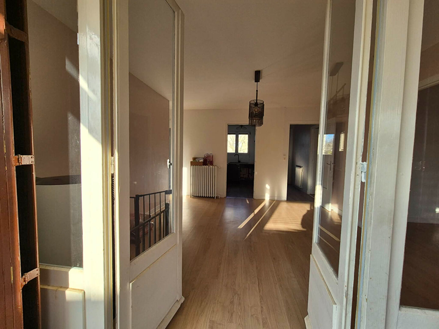 L'entrée dessert une belle pièce de vie de 25m² avec véranda de 12m² donnant accès sur le jardin, une belle cuisine séparée, trois chambres, une salle de bain avec water-closet. Garage.