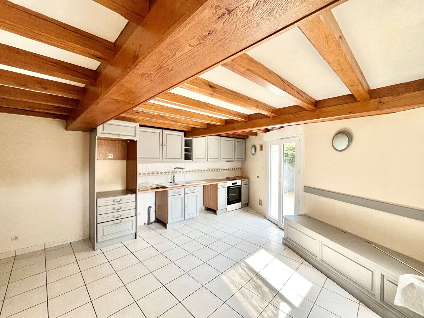 Grande cuisine lumineuse qui donne sur la cour