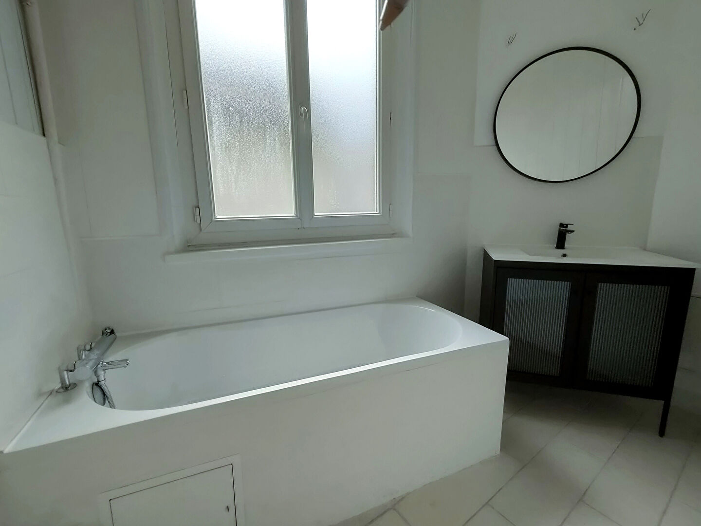 Maison de ville , dans une rue au calme en centre ville , comprenant : cuisine aménagée ouverte sur séjour. Au 1er étage : une chambre, salle de bains avec wc. Au 2ème étage : une chambre et un bureau. Chauffage gaz.