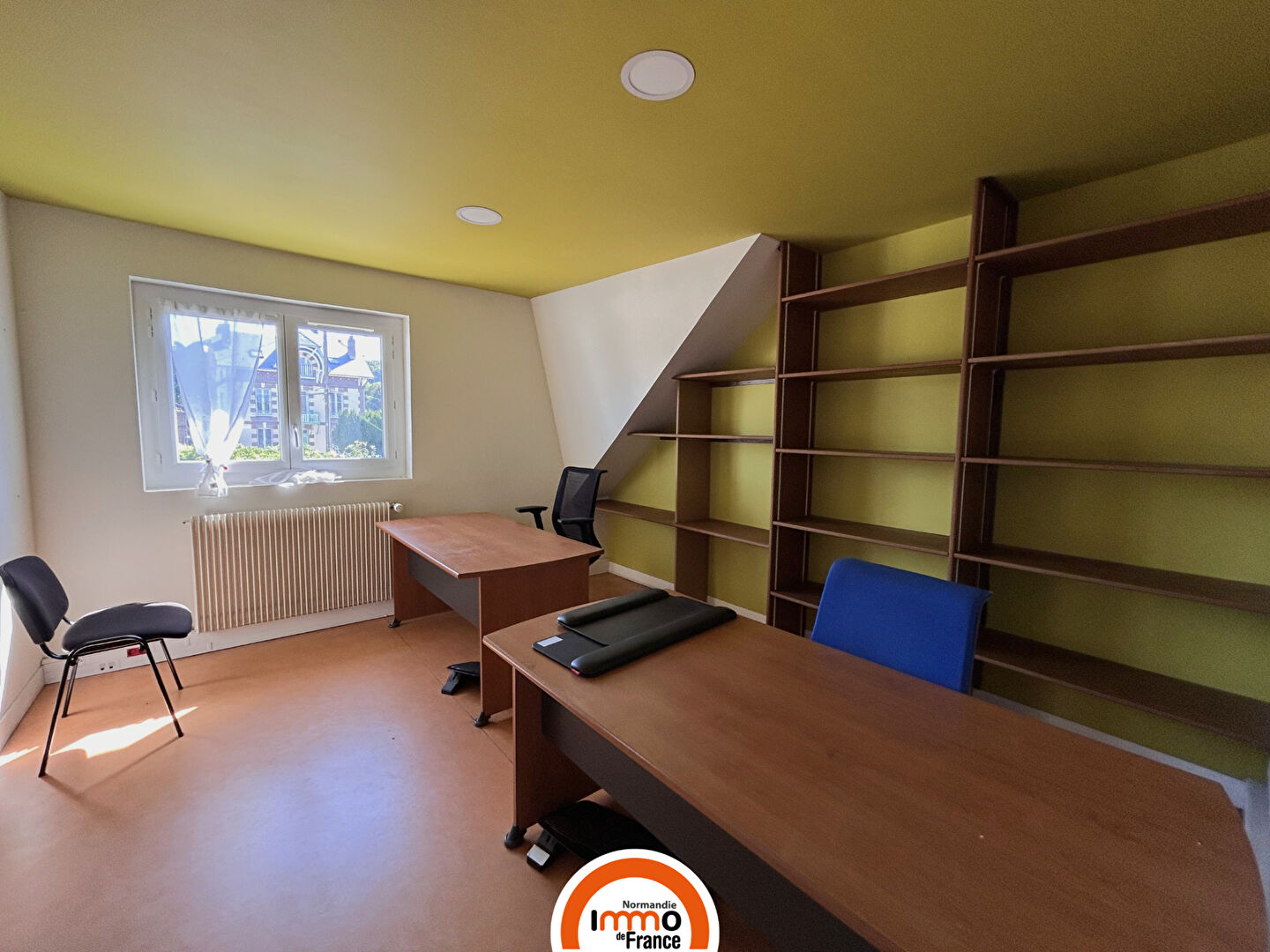 Édifiée sur une parcelle de 716 m², la maison, aujourd'hui aménagée en local professionnel, propose en rez-de-chaussée une entrée desservant trois bureaux, une cuisine, un WC avec point d'eau, ainsi qu'un garage transformé en espace supplémentaire avec chaufferie. A l'étage, vous découvrirez quatre bureaux spacieux, une vaste pièce palière, et un second WC.