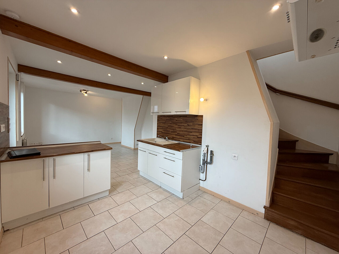 Charmante maison de 3 pièces à louer : Une belle cuisine indépendante aménagée, un beau séjour de plus de 31m², une salle d'eau et un WC,