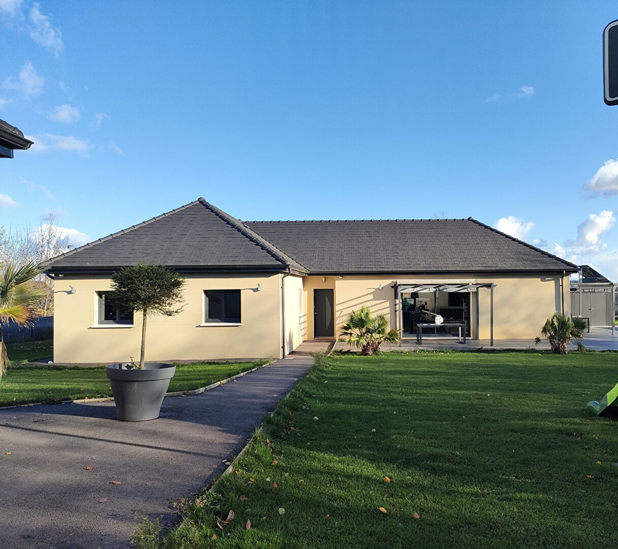 RARE sur le secteur en Exclusivité ! - Dans quartier résidentiel , PAVILLON NEUF DE 2021 PLAIN-PIED TOTAL comprenant : une cuisine équipée ouverte sur un vaste séjour-salon , 3 chambres + 1 suite parentale (douche à l'italienne) , salle de bains, 3 wc. Cellier/lingerie. Belle terrasse de 100m2. Dépendance avec GARAGE DOUBLE de 45 m2, parking goudronné.
