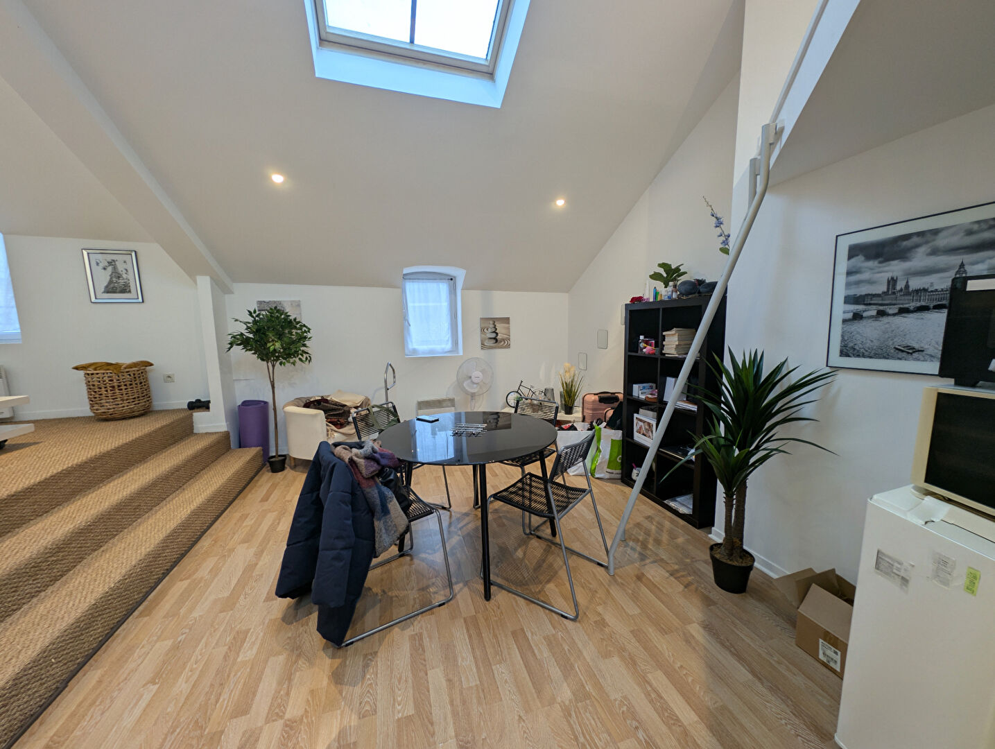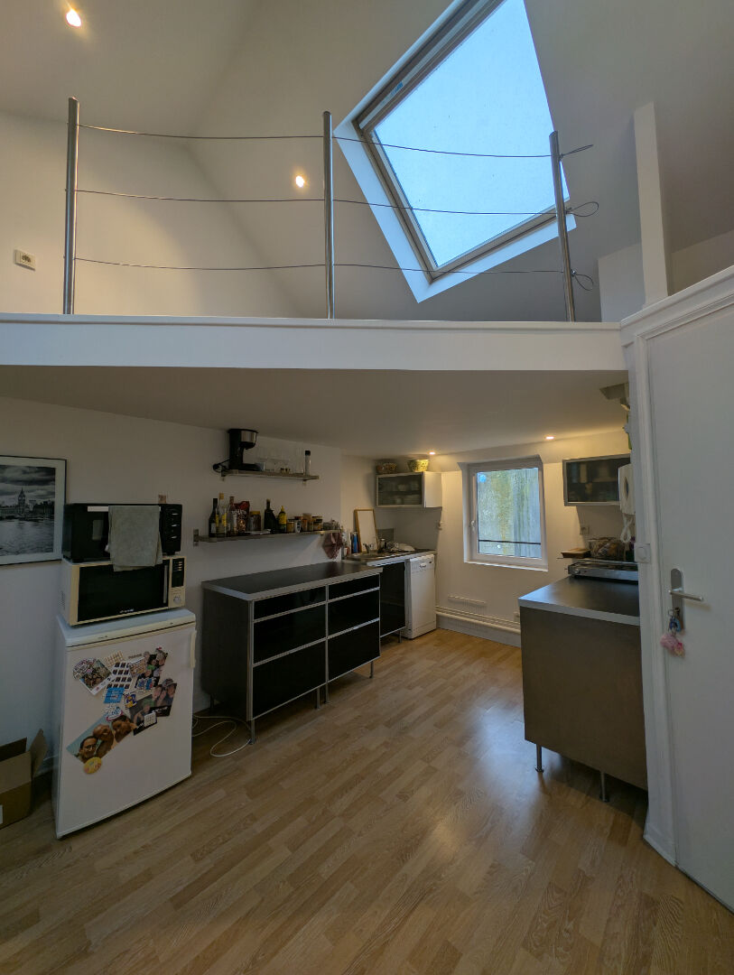 Lumineux et moderne, il bénéficie d'une belle hauteur sous plafond et d'un agencement fonctionnel comprenant une cuisine équipée, un espace repas, un séjour confortable, une chambre ainsi qu'une salle d'eau avec WC.