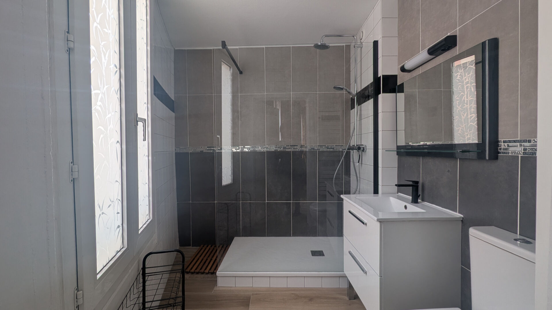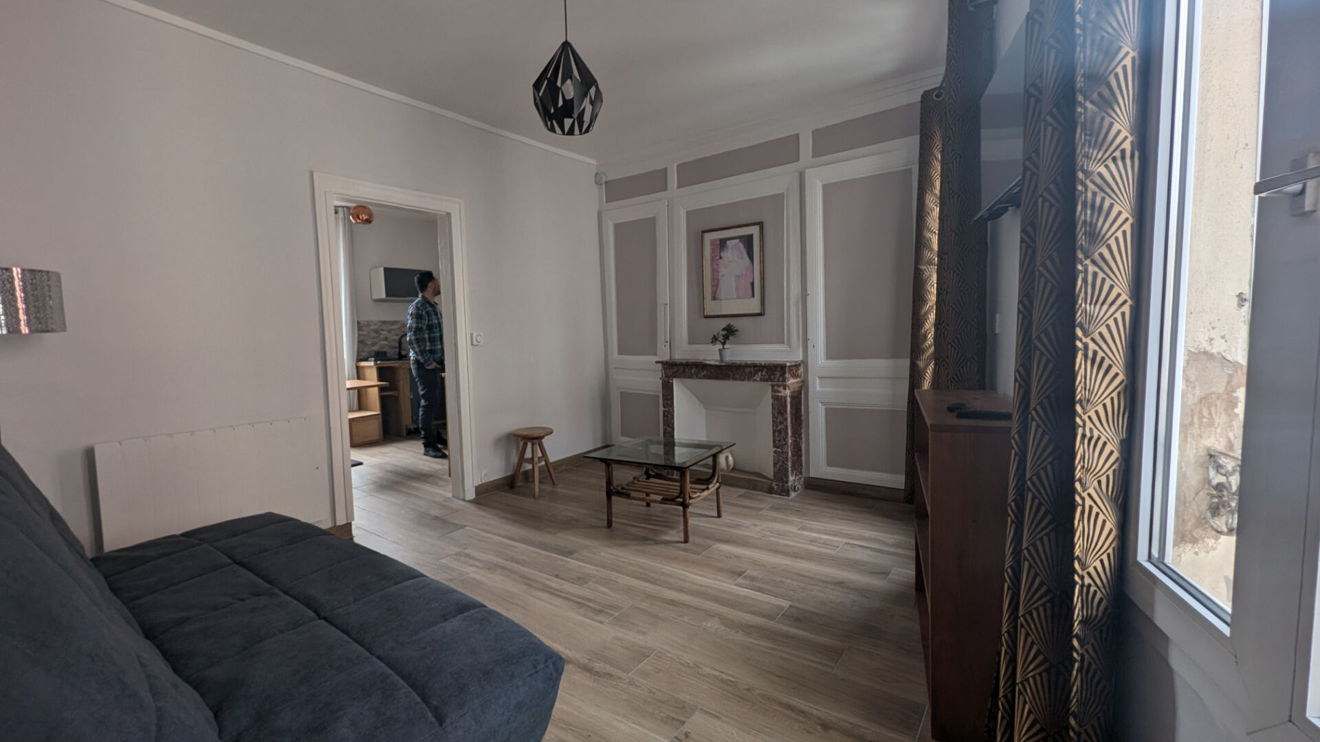 Il est composé d'une belle cuisine aménagée et équipée dinatoire, d'une pièce de vie avec canapé dépliant, télévision murale, d'une salle de douche dans un état impeccable, avec WC.