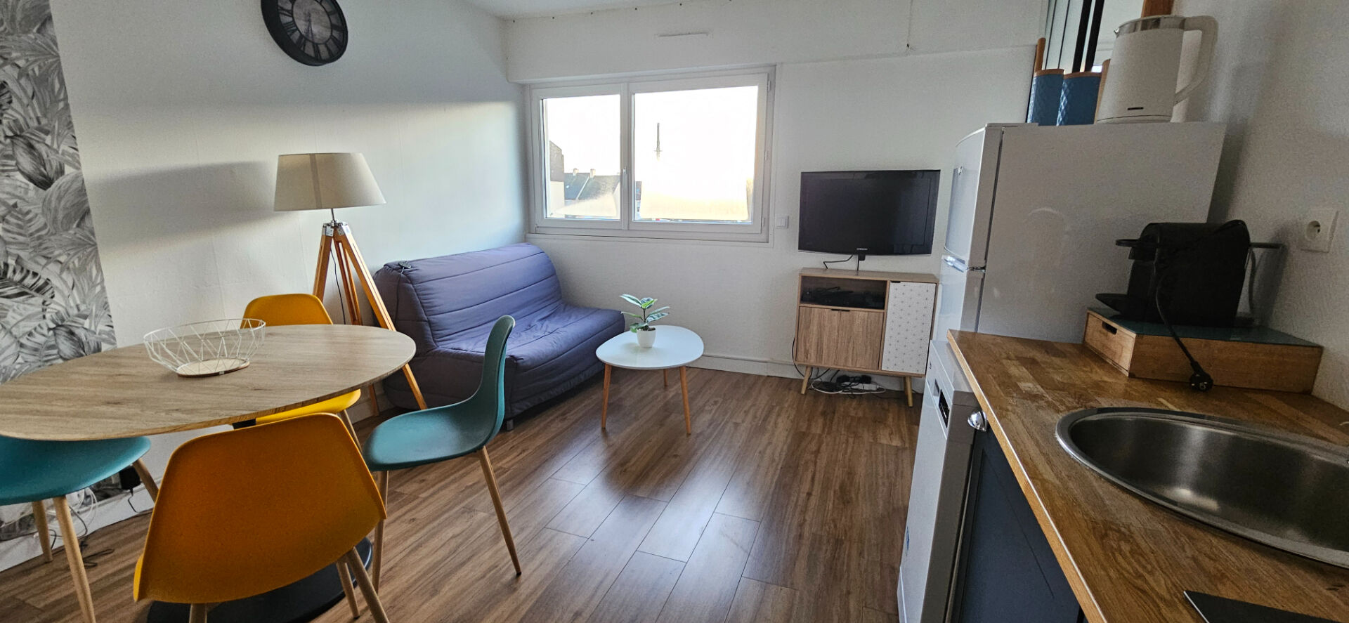 EXCLUSIVITE COURSEULLES SUR MER : A deux pas de la plage studio entièrement refait, vendu meublé et équipé offrant un espace de vie avec cuisine aménagée ouverte, un espace nuit, une entrée et une salle d'eau. Rénovation de qualité. Vous bénéficierez également d'une place de parking privative. Idéal pied à terre . Faibles charges.