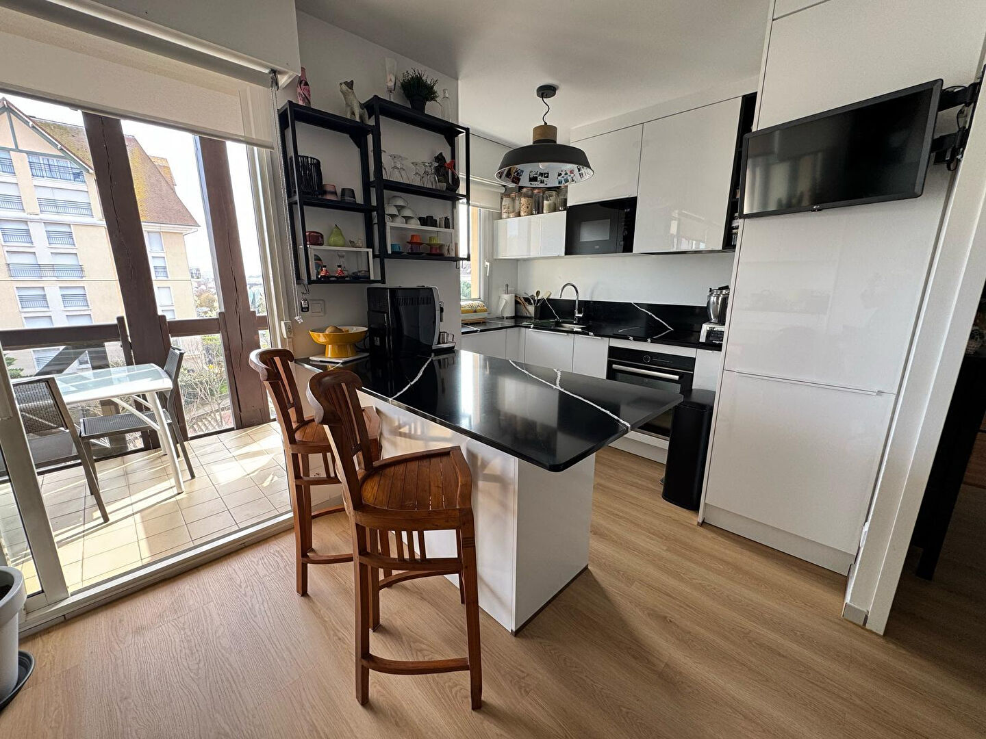 avec une cuisine américaine entièrement neuve (plan de travail en marbre aménagée et équipée (plan de travail en marbre. , électroménager neuf, salle à manger , cuisine américaine tout en marbre, palier, ,3 chambres1 salle de bains, un WC indépendant, une salle d'eau WC charges mensuelles 144Euro , habitables sans travaux, copropriété de197 lots , double vitrage Dpe C diagnostics en cours.