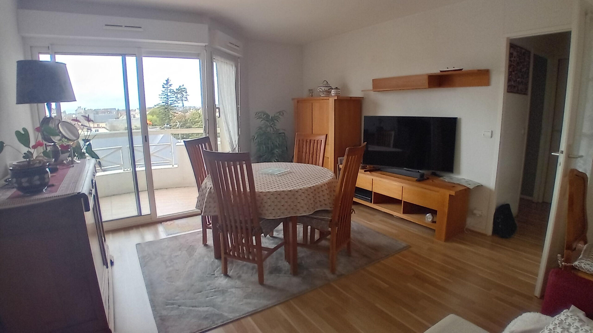 entée avec placard, séjour lumineux avec grand balcon, cuisine séparée, chambre, salle d'eau avec WC.