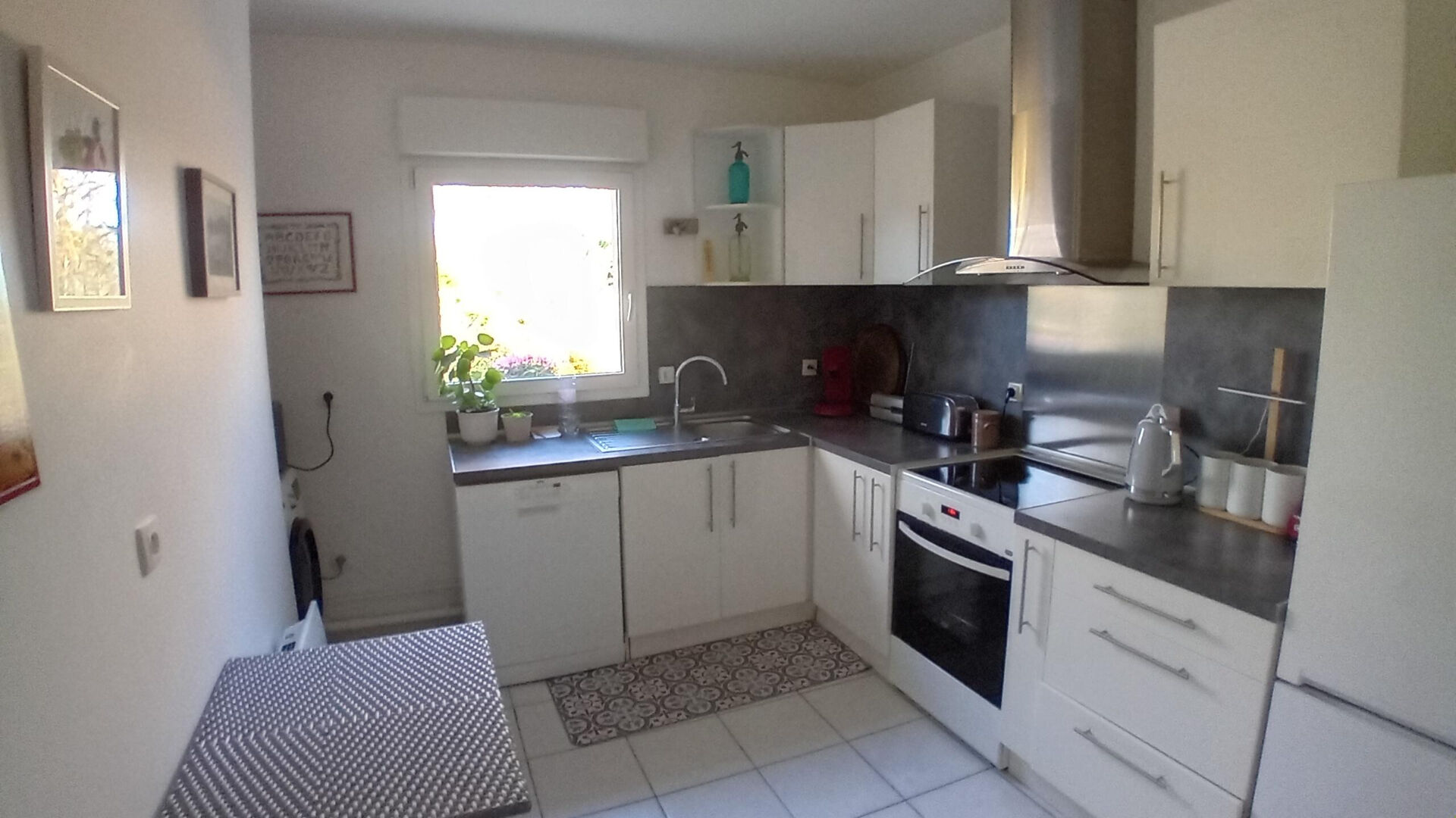 entrée, cuisine aménagée et équipée, vaste séjour lumineux avec grand balcon, deux chambres dont une avec dressing, salle d'eau, WC.