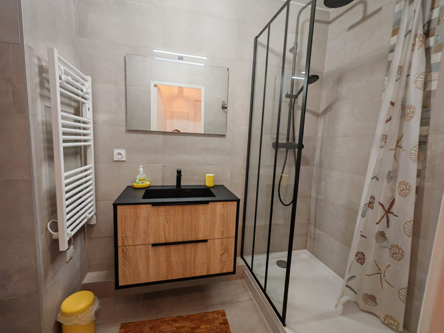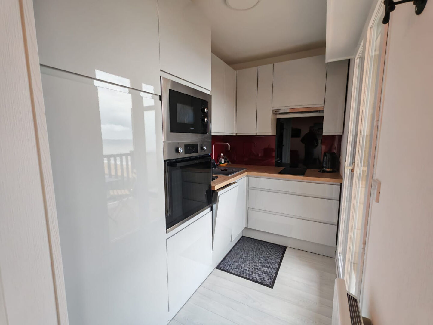 Appartement entièrement rénové avec grand balcon situé au 4° étage d'une résidence avec accès direct plage comprenant :