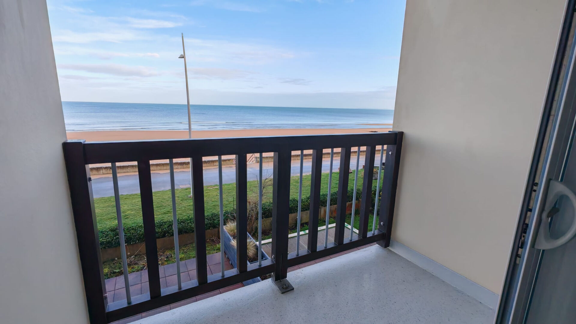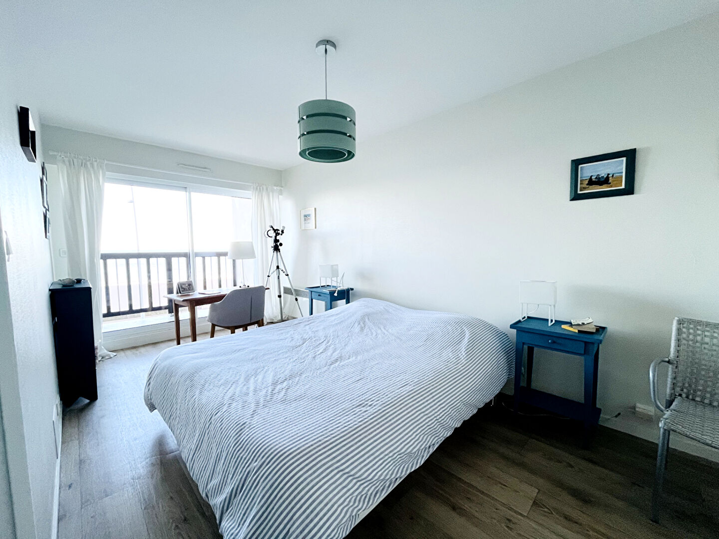 -une chambre disposant d'une loggia exposée plein sud, offrant une vue dégagée sur la Dives et les collines d'Houlgate.