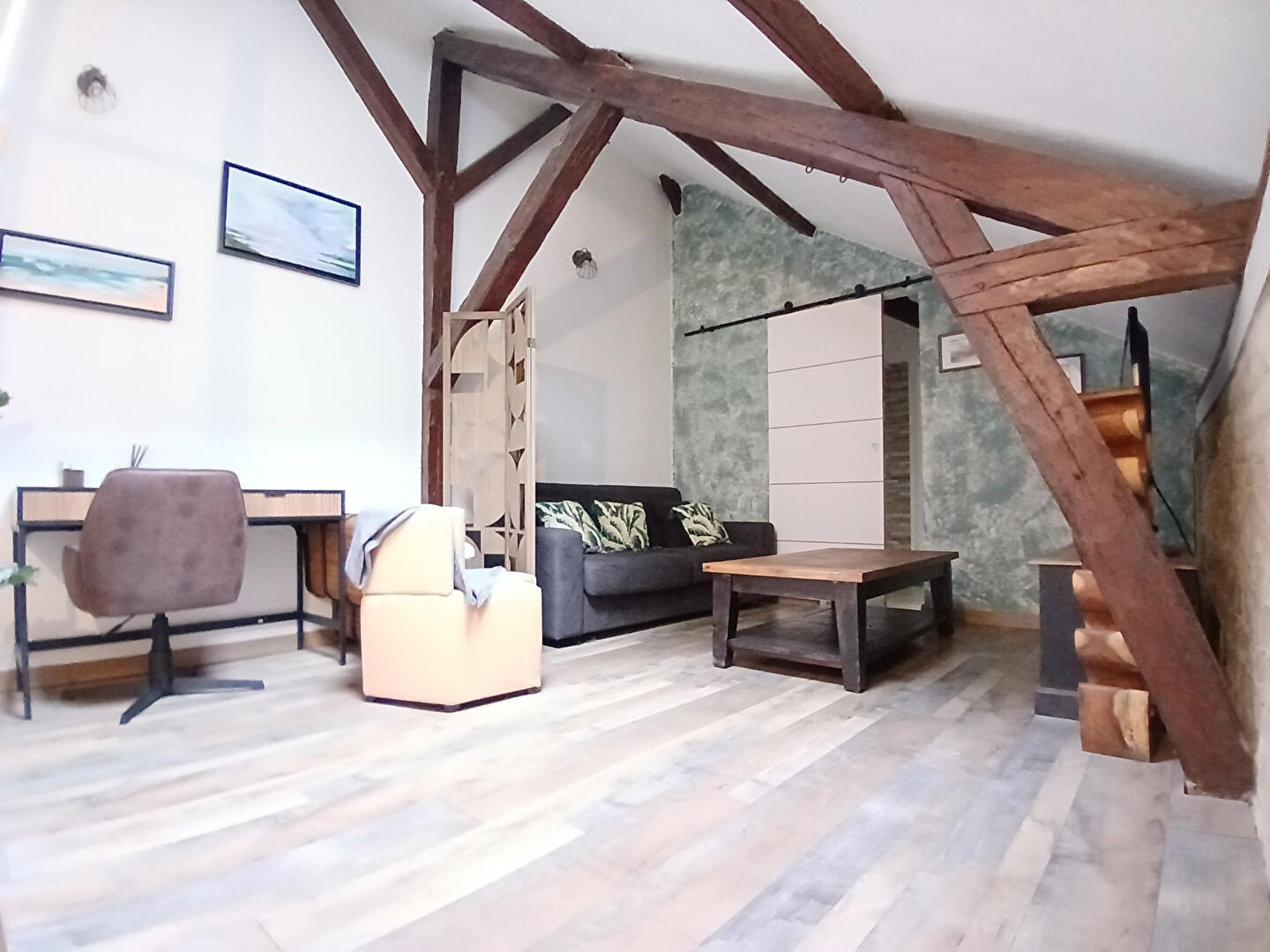 1er Etage: Salon, salle d'eau chambre et w-c séparé.