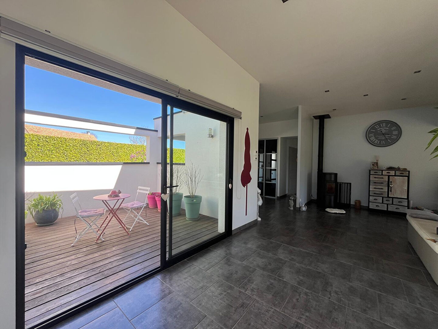 De larges ouvertures donnent, d'un côté, sur un patio et, de l'autre, sur une grande terrasse offrant une agréable vue sur le jardin, sans aucun vis-à-vis.