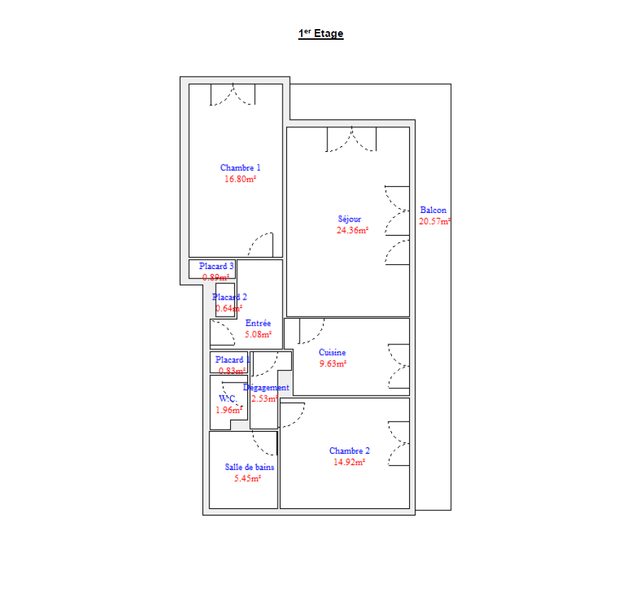 Il se compose d'une entrée avec placard, d'une salle de bains équipée à la fois d'une douche et d'une baignoire, d'un WC indépendant, de deux grandes chambres, d'une cuisine aménagée et équipée, ainsi que d'un spacieux salon/séjour.